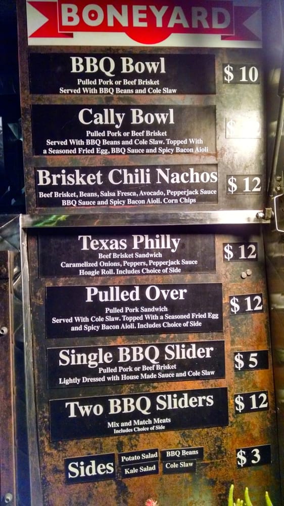 Introducing the menu at The Boneyard, a food truck sensation located in South San Francisco, is an experience rich in flavors and culinary passion. Each dish is crafted with care, making it a favorite for events like baby showers and birthday parties. The highlight? Their Texas Beef Brisket Burnt Ends—smoked for over 18 hours—deliver a crispy, smoky profile that keeps food lovers coming back for more.